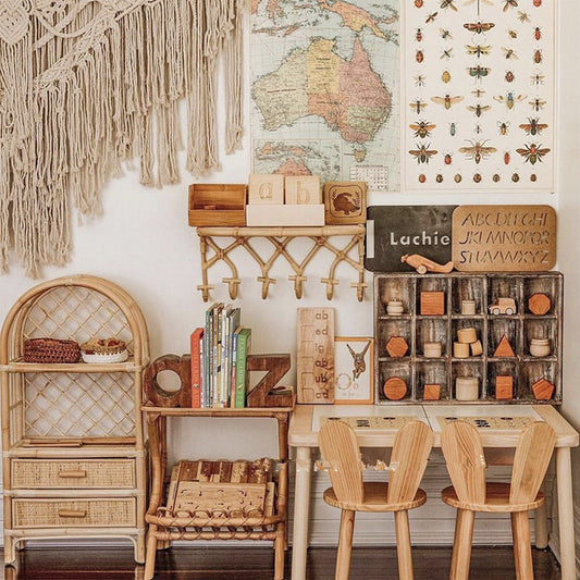 Trendiga inredningsdetaljer av rotting och bambu.
